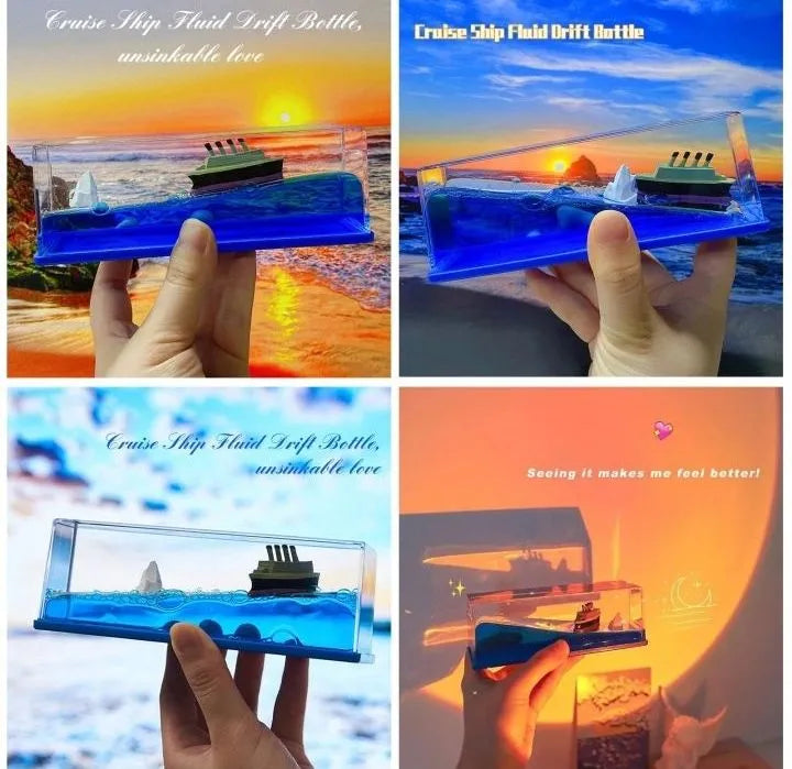 Boat Ornament - A funny boat ornament, a boat toy that can be played with. A boat model and an iceberg model floating in the liquid. Funny and novelty gift idea.