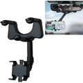 Car Phone Holder Rear View Mirror Mount Rotatable & Retractable Cell Stand Multifunctional Cradle Hands Free Fit All Mobiles Phones