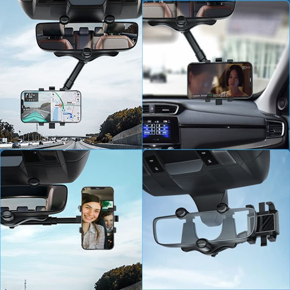 - [Upgrade 360°Rotatable & Retractable Car Holder]: Multifunctional rearview mirror phone holder adopts a 360°rotating structure, Switch between horizontal and vertical screens at will, The arm length can be retractable 0-5cm, super flexible design provide you with the best viewing angle.
