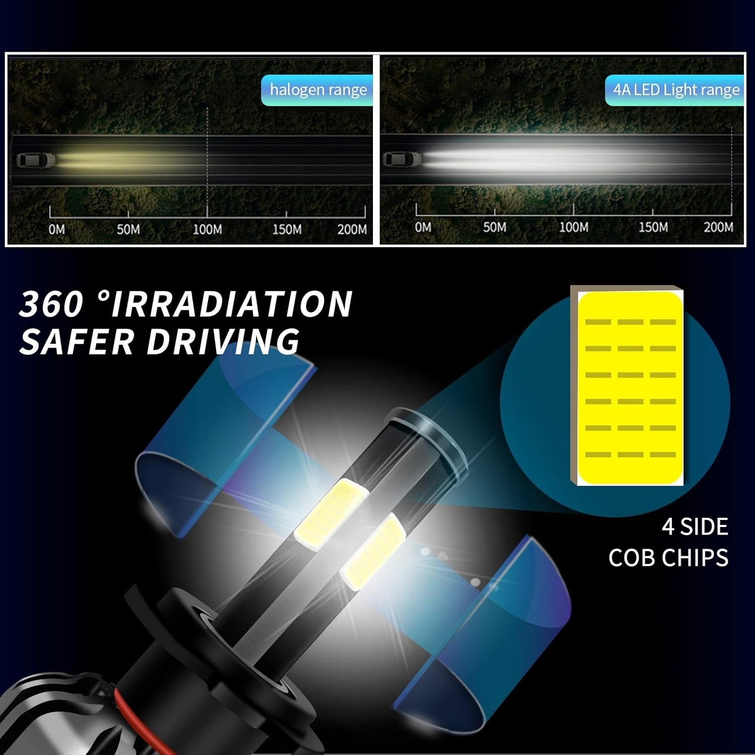 Specifications for a Conpex 200W H7 Led Headlight H4 H11 H1 H3 H13 9005 9006 9007 9012 Led Bulb 30000LM 6000K Canbus Light Bulbs For All Cars