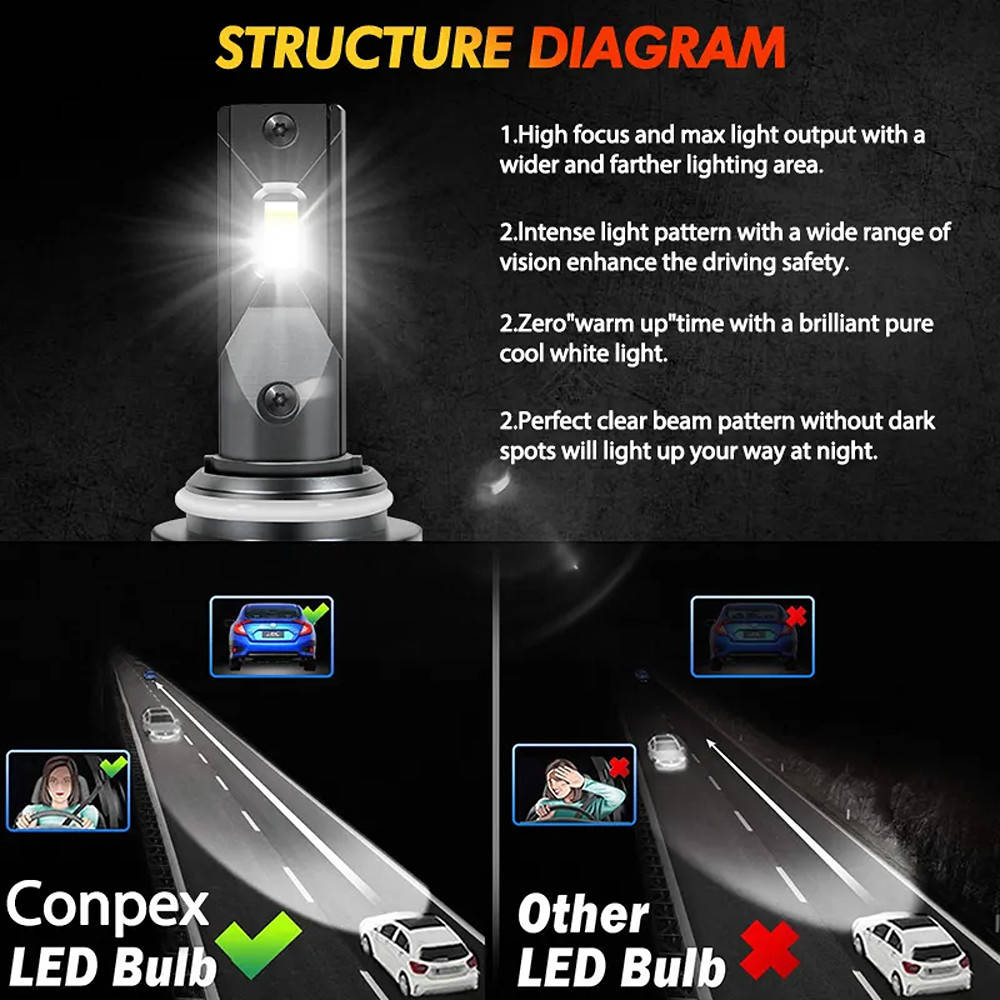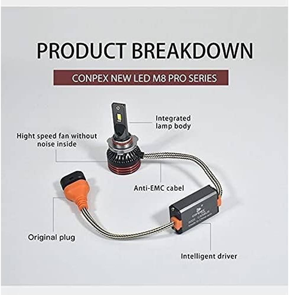 Conpex M8 Pro (H4) LED Headlight Bulbs, Bridgelex CSP Chip, 12000 Luminous Flux, 6000K Color Temperature, Super Cooling System, 360° Rotary Design | M8PRO-H4